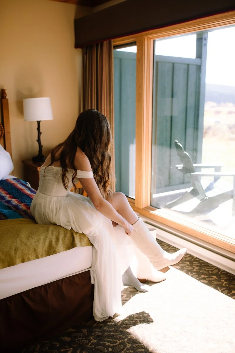 McKenna & Jeremiah chose Jackson Lake Lodge as their getting-ready location, and it could not have been more perfect. The lodge’s large windows provided an unparalleled view of Mount Moran, setting the scene for a peaceful and picturesque afternoon.