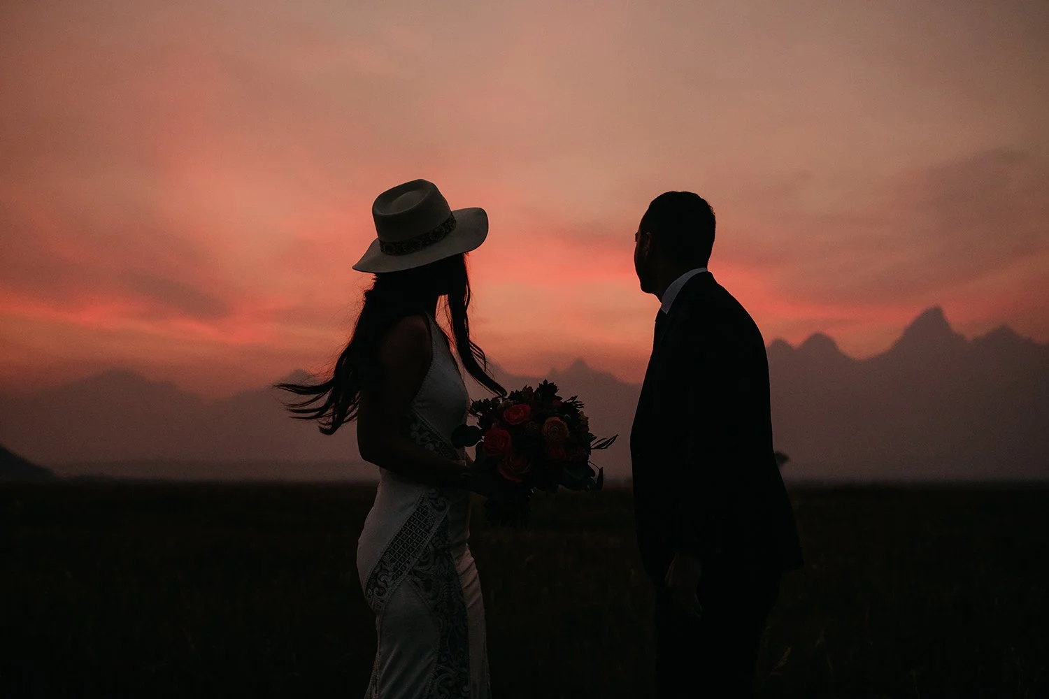 Glacier View Turnout sits on a hillside overlooking the valley, offering a breathtaking view of the sage fields and the mountains in the distance. The view is particularly impressive during sunrise and sunset when the sky is painted with a spectrum of colors, making it an ideal spot for romantic and intimate elopement ceremonies. The area is surrounded by wildflowers and sage brush, adding a touch of natural beauty to the landscape. With its expansive views and natural beauty, Glacier View Turnout is a top choice for couples looking for a picturesque and dynamic elopement location in Grand Teton National Park.