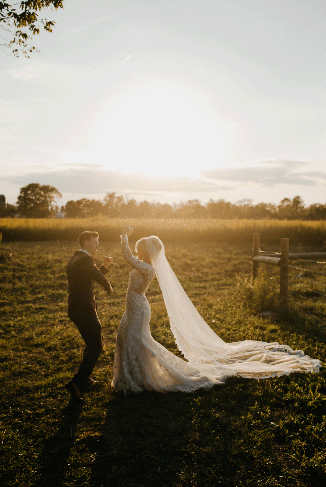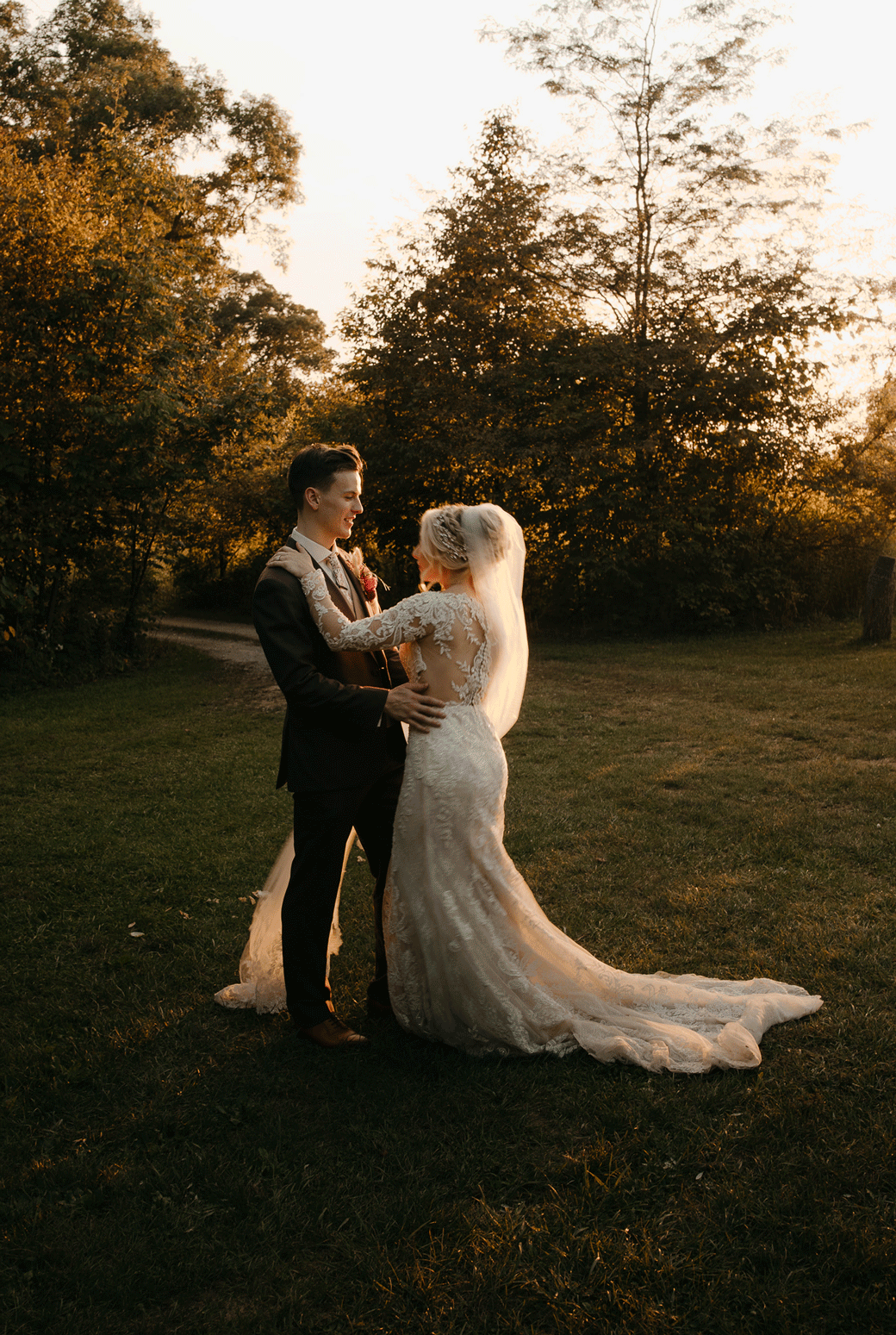 The ceremony & family formals ended at the perfect time. When we started portraits of just Karina & Chase the sun peeked out of the clouds and filled the scene with its golden glow. The couple sent their guests to the cocktail hour, and then moved into the setting sunlight to exchange their personal vows in private. They wanted this moment to be just between the two of them.