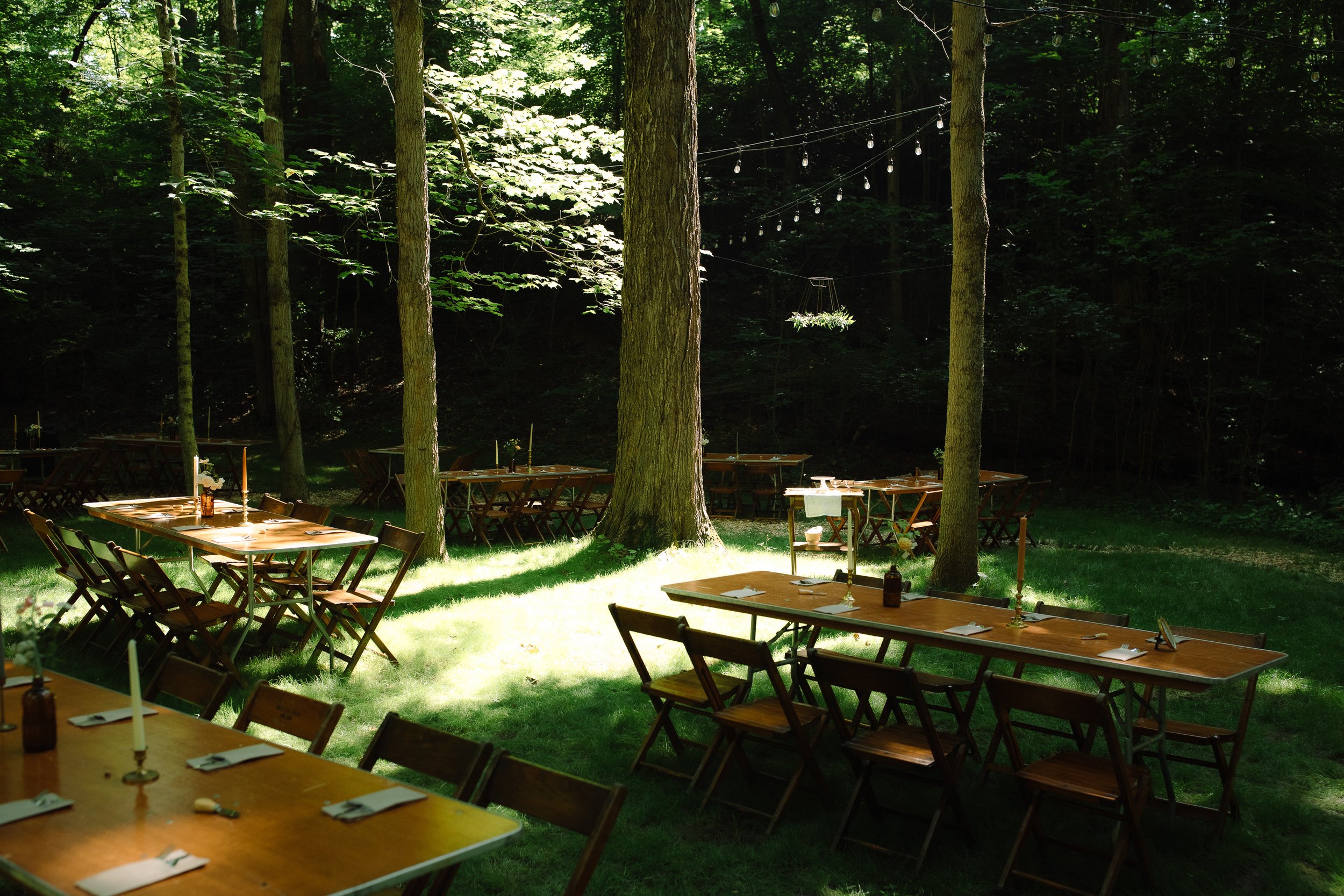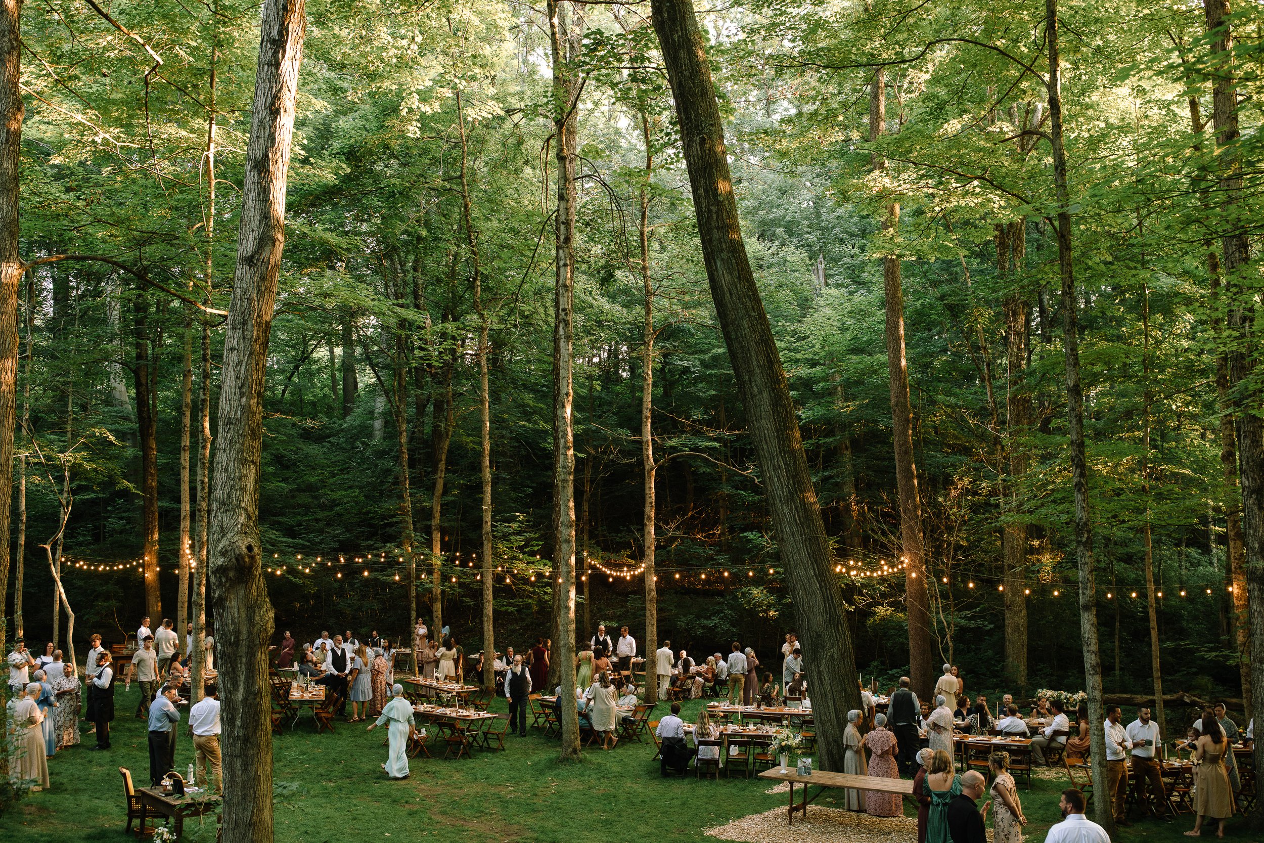 This entire reception felt like the perfect balance of celebration and intimacy—a true string light wedding reception where guests felt free to relax, share stories, and soak up every moment under the woodland canopy.